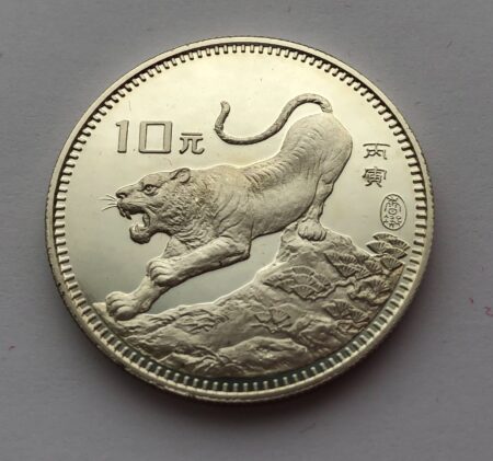 中国 丙寅(ひのえとら)虎年記念 10元銀貨 1986年